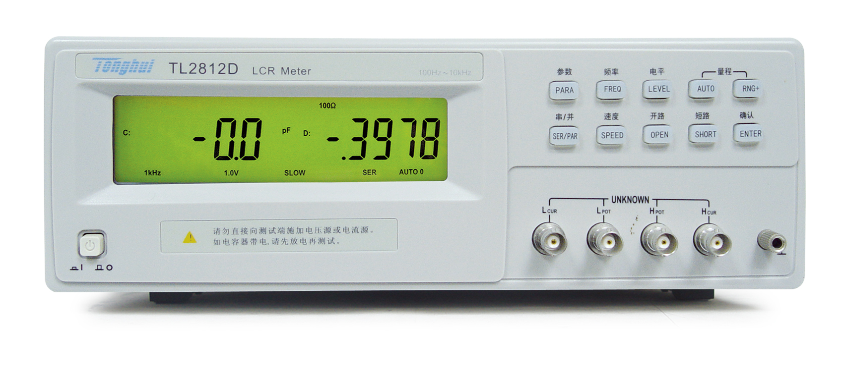 ■?TL2812D型LCR数字电桥是本公司最新研制的低频元件测量的换代产品, 其中应用多项元件测量的最新技术,大字符LCD显示,采用SMT贴片工艺,操作方便,外形美观??陕闵咧柿勘V?、进货检验及自动化生产的需要。TL2812D为常州同惠最新推出的一款低价LCR数字电桥,可替代TH2811D,在夹具方面采用了TH26004s-1四端开尔文测试电缆,但精度由TH2811D的0.2%改为0.25%,内阻恒定100欧姆。