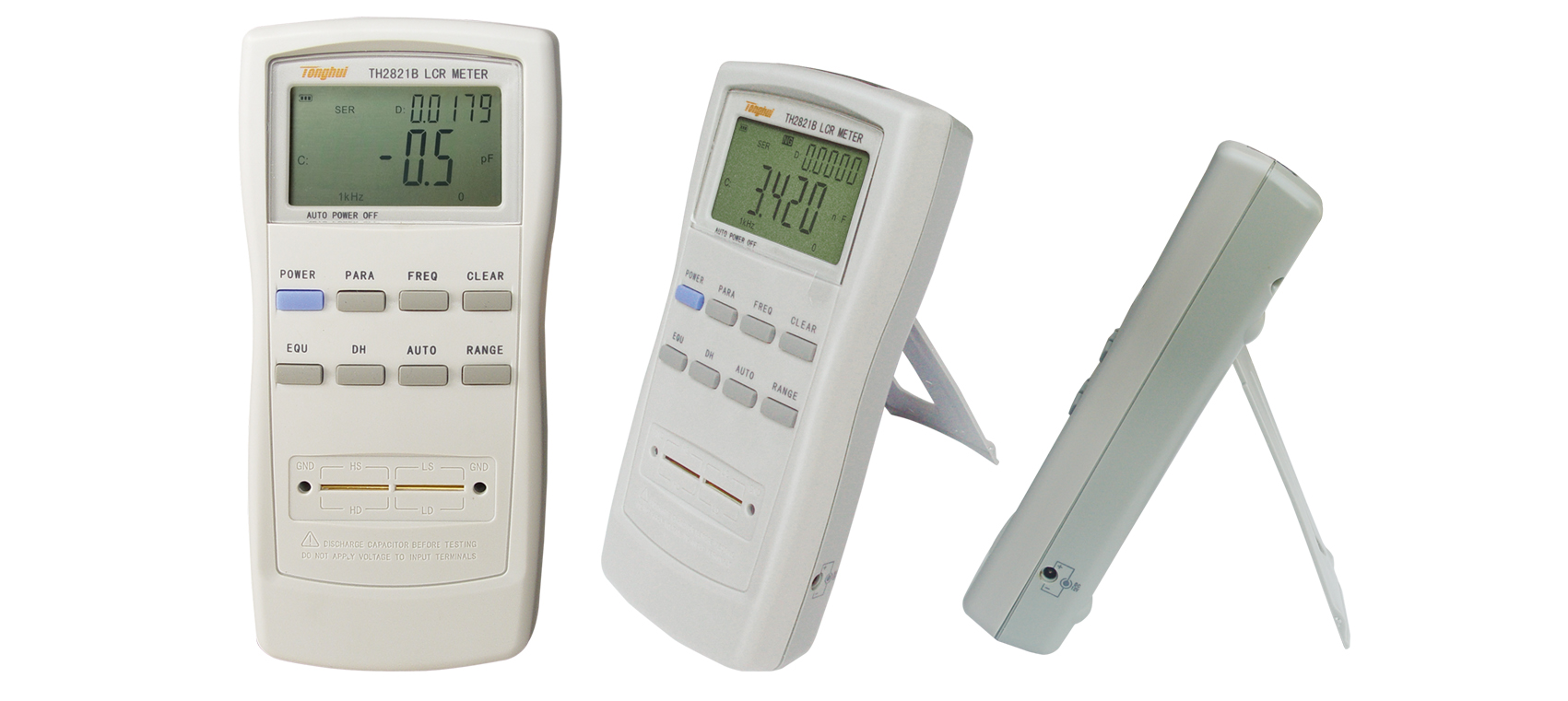 ■?同惠TH2821B是国内首创的手持式LCR数字电桥??刹饬康绺蠰、电容C、电阻R、阻抗Z、损耗因子D和品质因数Q六种基本参数。是TH2821A的简化版,频率低至1KHz,没有分选功能,性价比高。由于采用了完全的五端测量方式,解决了其它手持式LCR表所不能解决的串联等效电阻和小损耗电容器准确测量的问题。该产品完全可替代一般的低频台式LCR表。由于采用了电池和外接电源两种供电方式,既能适应固定场合对元器件进行检测,又可随身携带以满足采购及维修人员的现场测试要求。