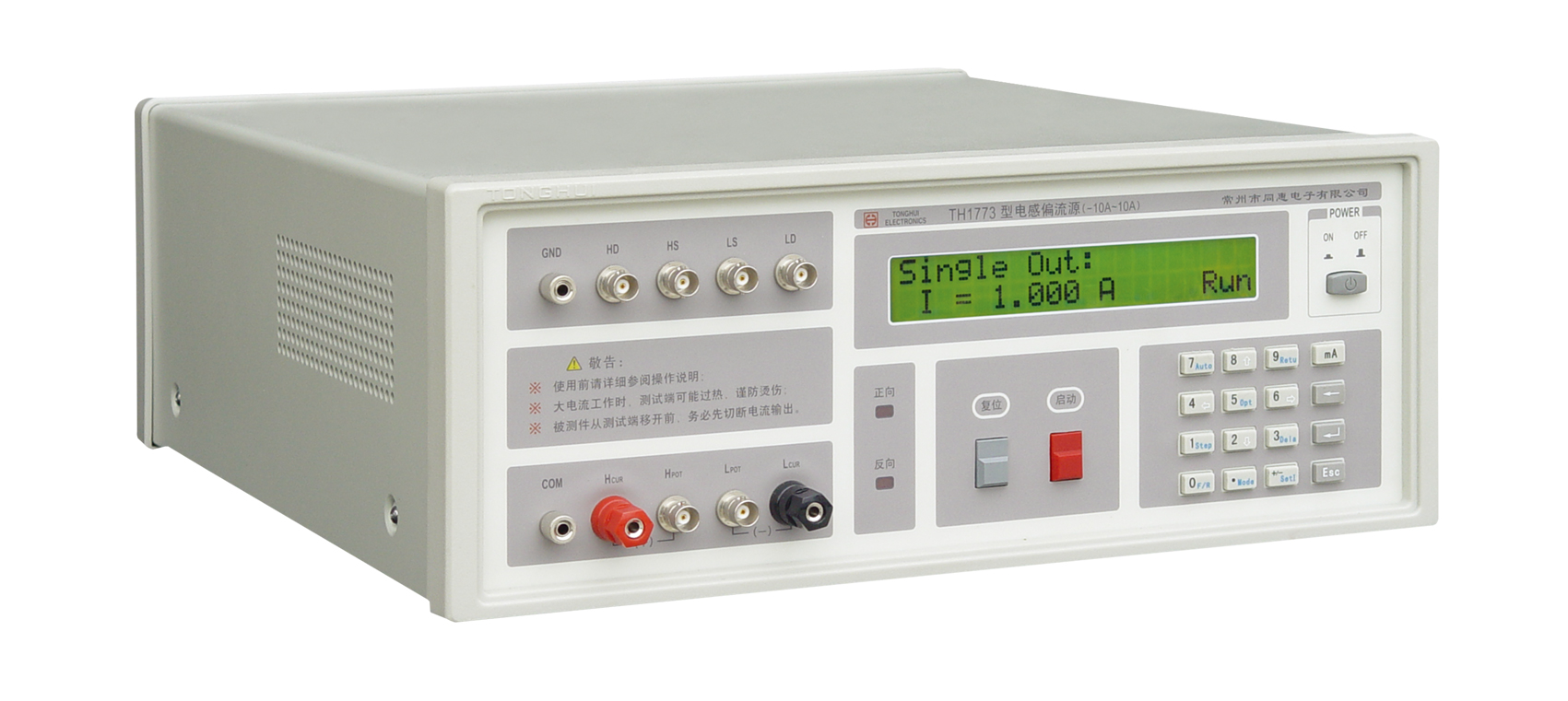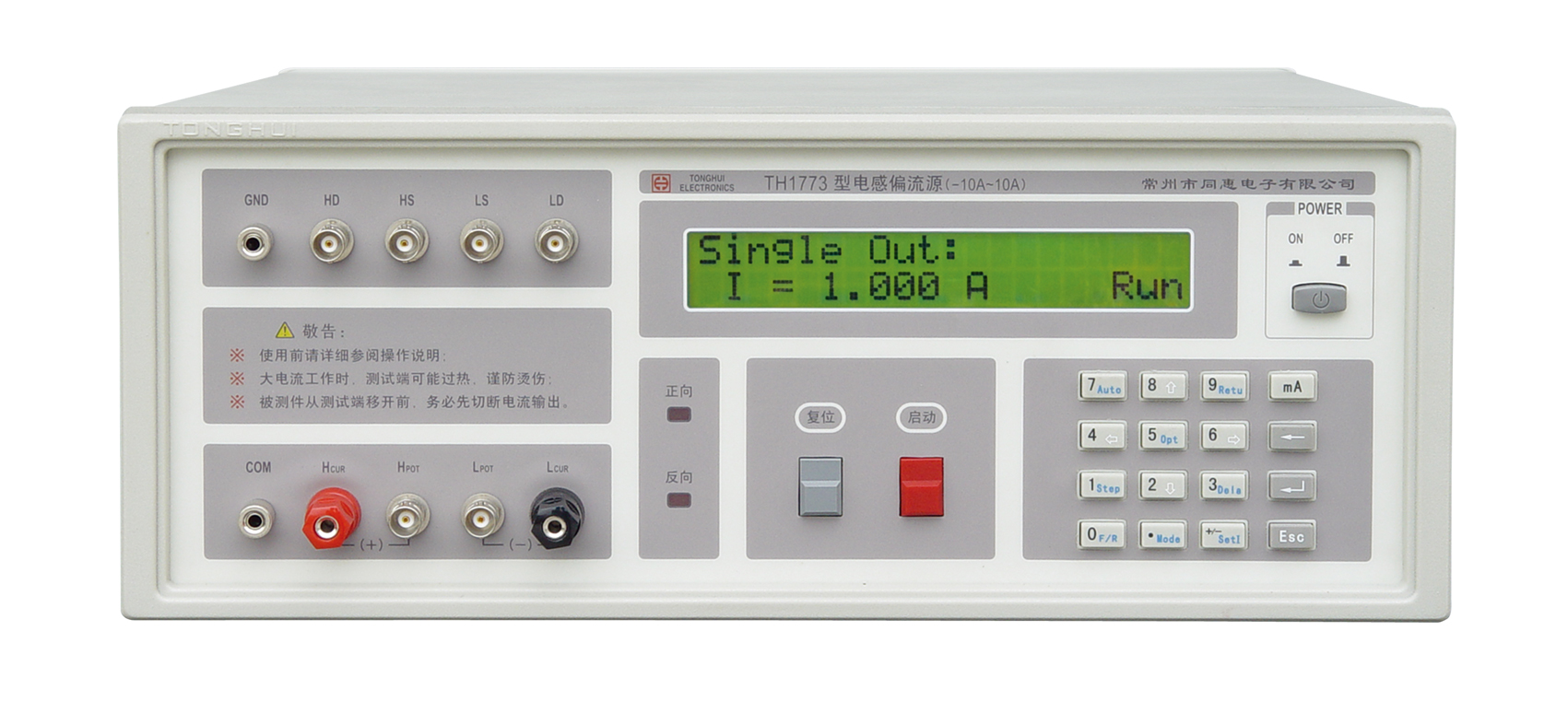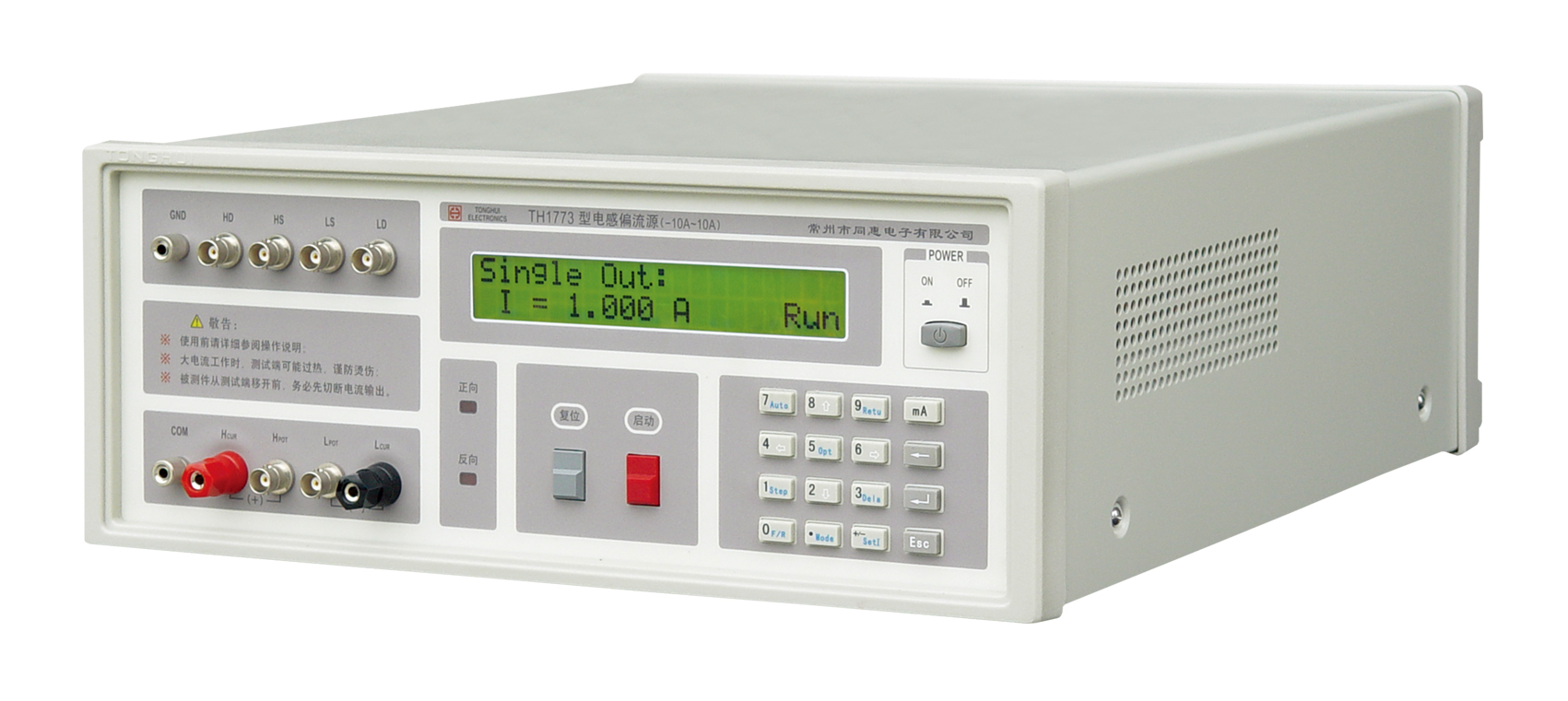 ■?TH1773型直流偏置电流源(也称直流磁化电源)主要用于电感,变压器线圈进行电感测量时施加直流偏置电流,对该类仪器除需达到所需电流外,还需有对电感量测量影响小,频率响应宽(叠加直流电流时可使用高频LCR表进行测量)等要求。该产品通过微处理器控制,采用自动电流平衡原理进行交直流叠加及电流的稳定,可正向或反向输出0-10A(TH1773)范围的恒定电流,该产品产生的附加误差小,频响得到大幅提升,大大拓宽了磁芯电感器的偏流测试中的应用范围。直接受控于TH2816A/TH2817A/TH2818/TH2819及多点电流扫描输出功能为方便地进行磁性材料分析提供了良好的解决方案。