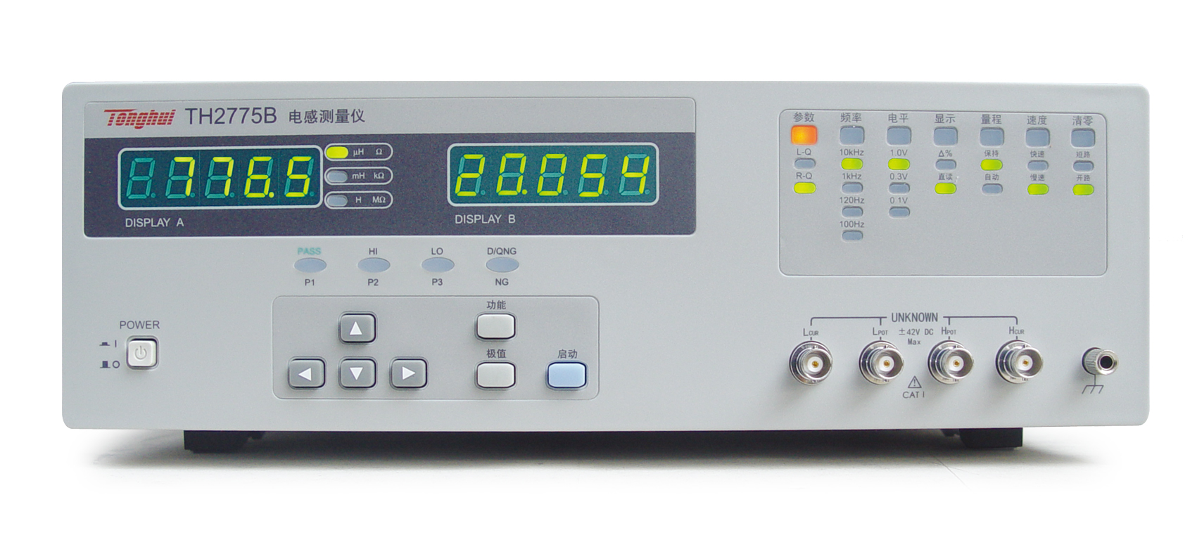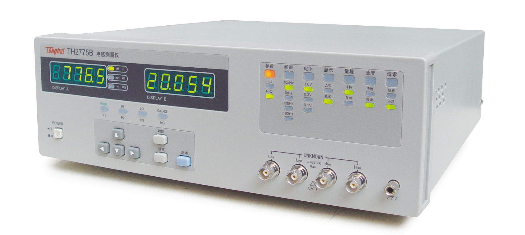 ■?TH2775B元件参数测试仪是最新研制的高性能价格比的测量仪器,能自动测量电感量 L、电容量 C、电阻值 R、复阻抗 Z、品质因数 Q 和损耗角正切值 D 等元件参数, TH2775B将强大的功能、优越的性能及简单的操作结合在一起,既能适应生产现场高速测量的需要,又能满足质检、计量、科研实验等部门精密检测的需要。