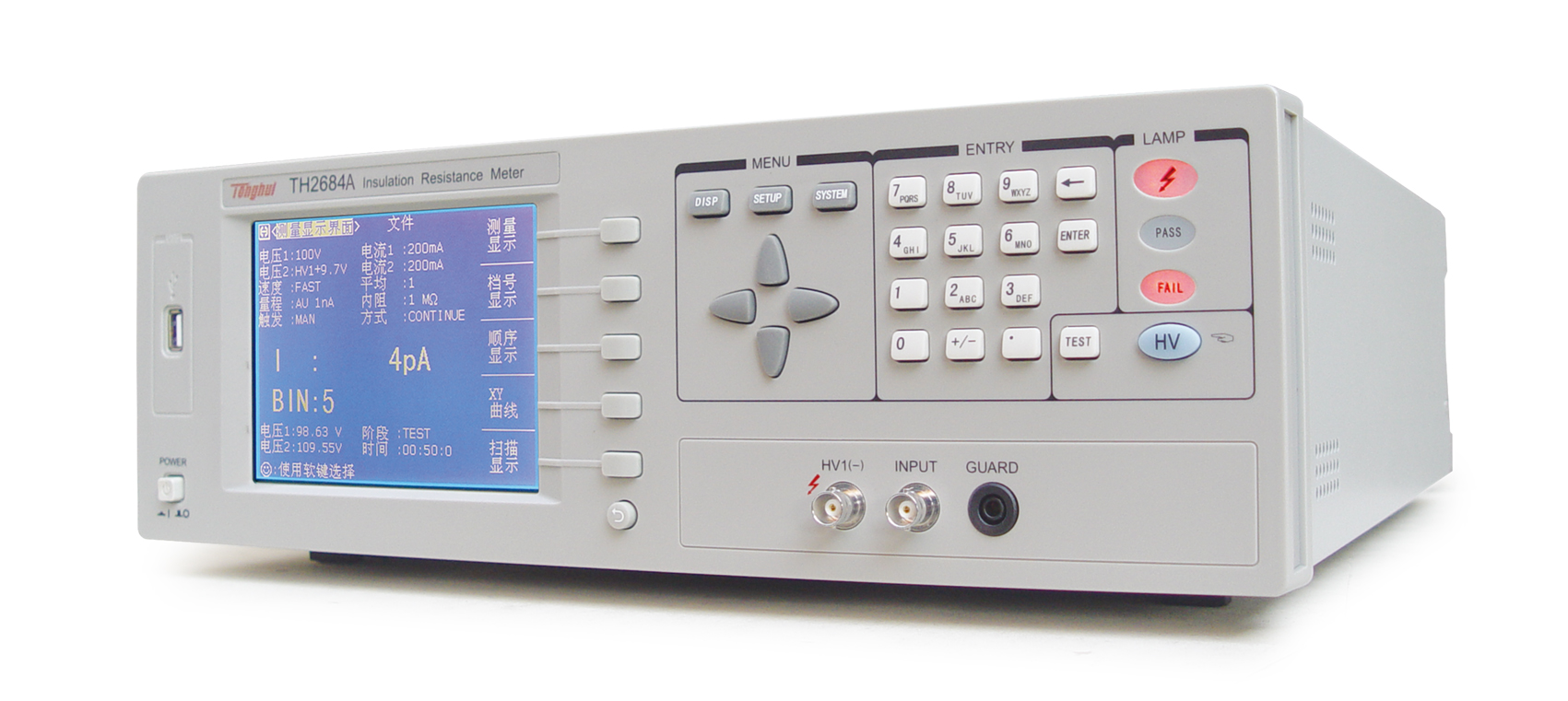 ■ TH2684A型高精度绝缘电阻测试仪是一款能快速测量电子元器件,介质材料,设备和电线电缆等绝缘性能的智能化测量仪器。采用大尺寸的液晶,人性化的菜单布局,使用户可更方便的操作仪器。