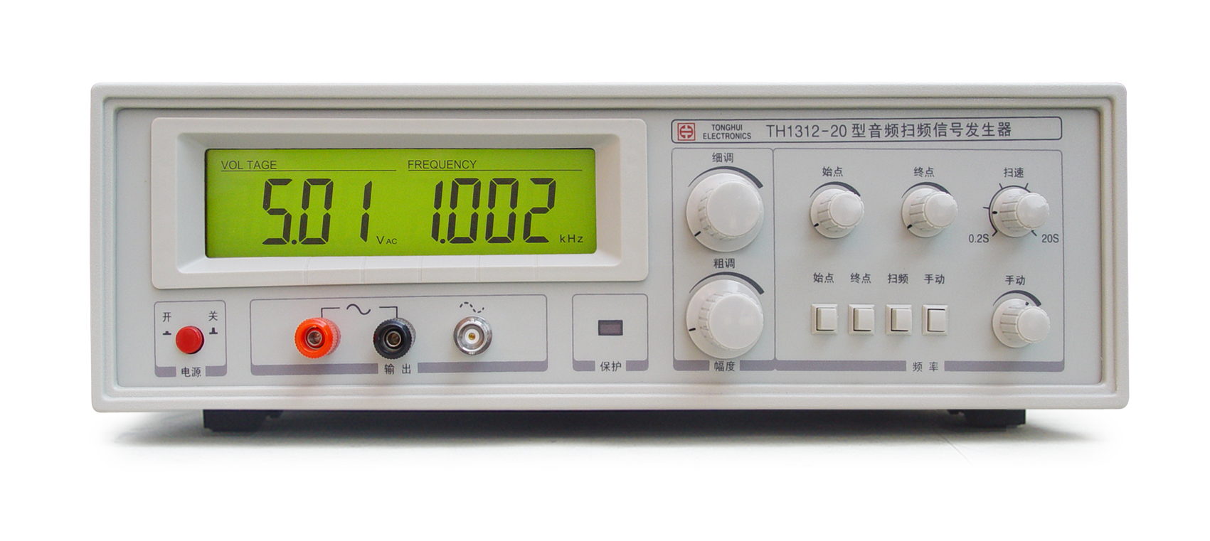 ■ TH1312系列音频扫频信号发生器3 3/4位LCD显示,正弦波输出,失真小,稳定性好,频率范围覆盖整个音频范围。可手动调频,也可对数扫频,扫频起点、终点及扫频时间均可按需设置。产品具有开关机延时、过流?;?、短路?;さ缺;ご胧?,允许输出端长时间短路,为使用者提供了方便和保障。有很好的负载调整率和幅频平坦度,三种不同输出功率的机型可以选择??晒惴河τ糜谏?、振动、电信等领域作为信号激励源,特别适用于扬声器单元及扬声器系统(音箱)的纯音检听。