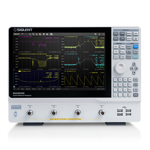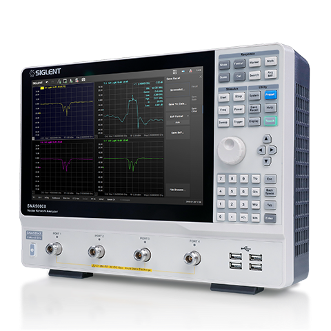 SNA5000X系列支持在多个窗口添加多条迹线进行全4端口S参数测试,并且具备多种显示格式,比如 Log Mag,Lin Mag,Phase,Delay,Smith,SWR,Polar等,可以方便快捷地分析被测物的传输系数,反射系数,驻波比,阻抗匹配,相位,延时等参数。在生产线验证天线,滤波器等的特性时,还可以保存参考迹线或者添加Limit模板进行通过失败测试,有利于提高生产效率。