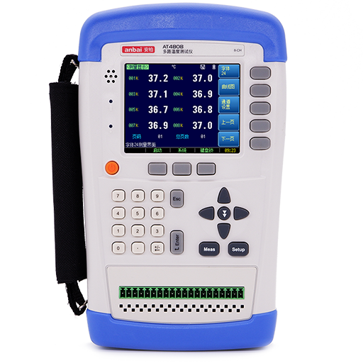 AT4808 手持多路温度测试仪具有广泛的适应性,支持K/N/E/J/T/R/S/B型热电偶。测试范围从-200℃~1800℃。