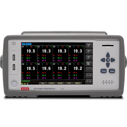 AT47V系列多路温度测试仪采用高性能ARM微处理器控制,7英寸彩色液晶屏显示,触摸屏操作,方便查看温度值,温度变化曲线,柱状图等,可同时对多路温度数据进行采集,上超下超报警和通讯传输,AT47V系列可采集64路温度数据,兼容K/N/E/J/T/R/S/B型热电偶,响应速度快,数据稳定,同时具备断偶检测功能。每通道可单独设置,独立校正。