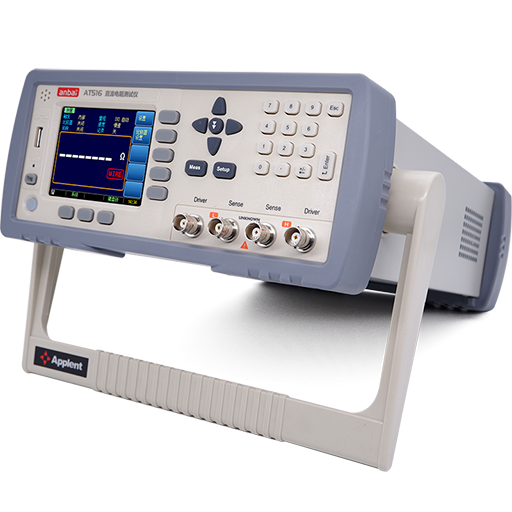 AT516 直流电阻测试仪,采用高性能 ARM 微处理器控制的全自动实时检测的微型台式仪器。仪器具有 0.05%的准确度和 1μΩ~20MΩ的测量范围。电阻值以 5 位显示,具有 30000 读数,采样速度为 7ms。仪器内置温度补偿接口,用来补偿因为温度所引起的误差。