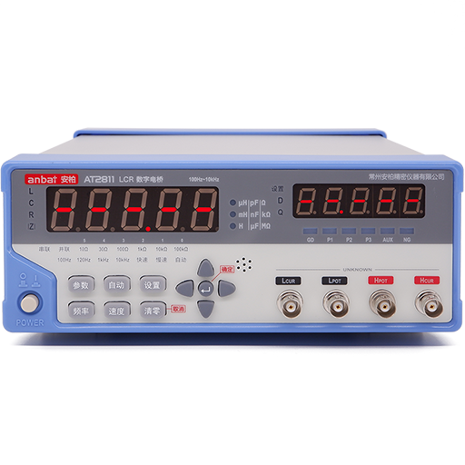 AT2811是通用LCR数字电桥,是经济型微型台式仪器。测试频率: 100Hz,120Hz,1kHz和10kHz,0.1V、0.3V 和 1V 电平可选,30Ω、100Ω源内阻可选。