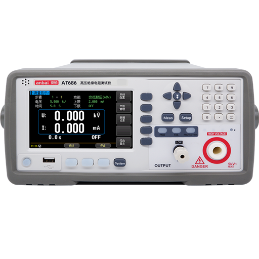 AT686高压绝缘电阻测试仪是采用高性能ARM微处理器控制的智能测试仪器。彩色液晶显示,手创50V~2500V任意电压输出,满足任何挑剔的要求。使绝缘电阻测量范围可达:200k-1TΩ(105~1012Ω),显示位数20000数。测试速度可达100次/秒,超高速测试为自动化生产提供了优选方案。