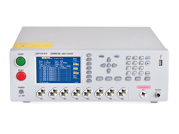 ●ZX9501SA-8:带8路扫描功能交直流绝缘耐压测试仪,带测试线接触检查功能。