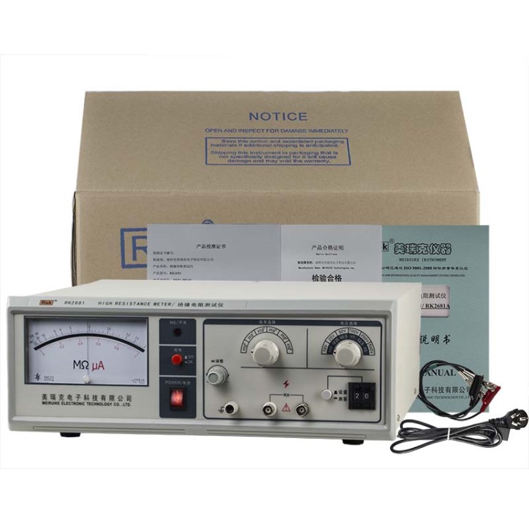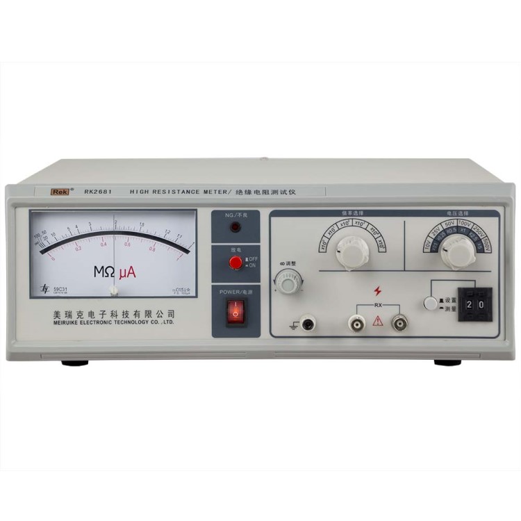 RK2681系列绝缘电阻测试仪是一种测量家用电器、照明电器、电动电热器、电子元件、介质材料、整机等绝缘性能的测量仪器。测试速度快、稳定性好、操作方便、并具有不良判别的功能。
