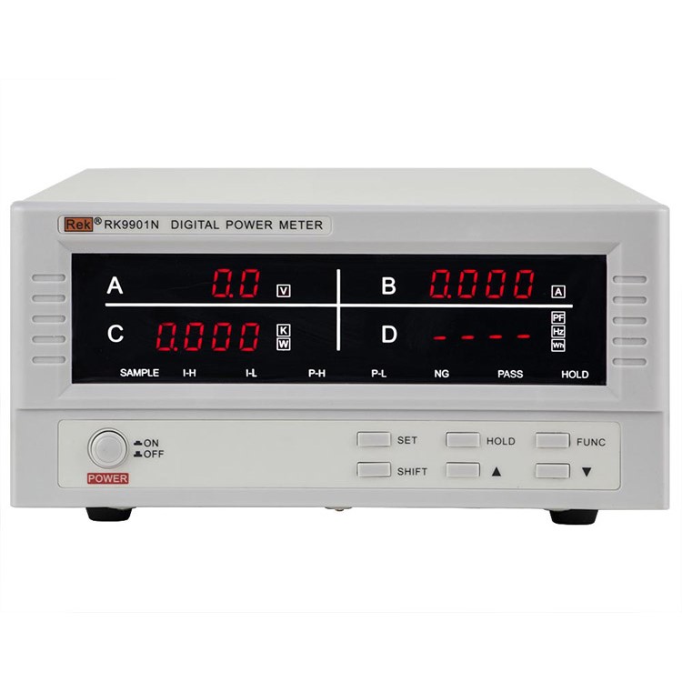 RK9800N智能电量测量仪(数字功率计),可以同时测量单相用电设备的电压、电流、功率、功率因数、频率、电能等参数,测量内容丰富,具有量程范围宽,预置报警、锁存和通讯等功能。