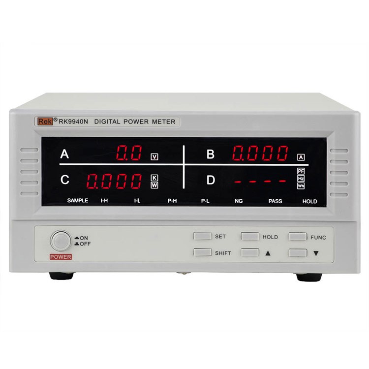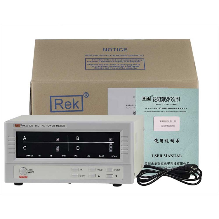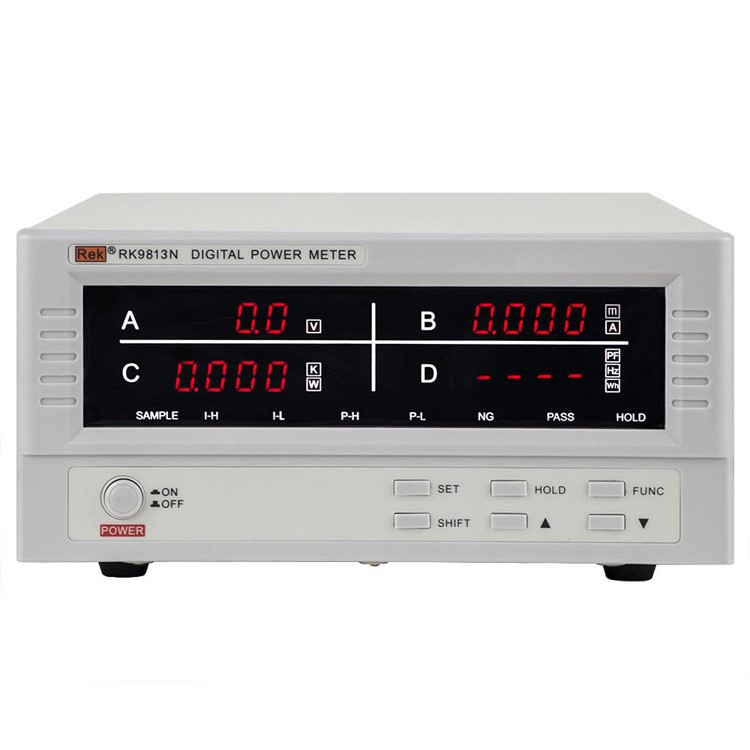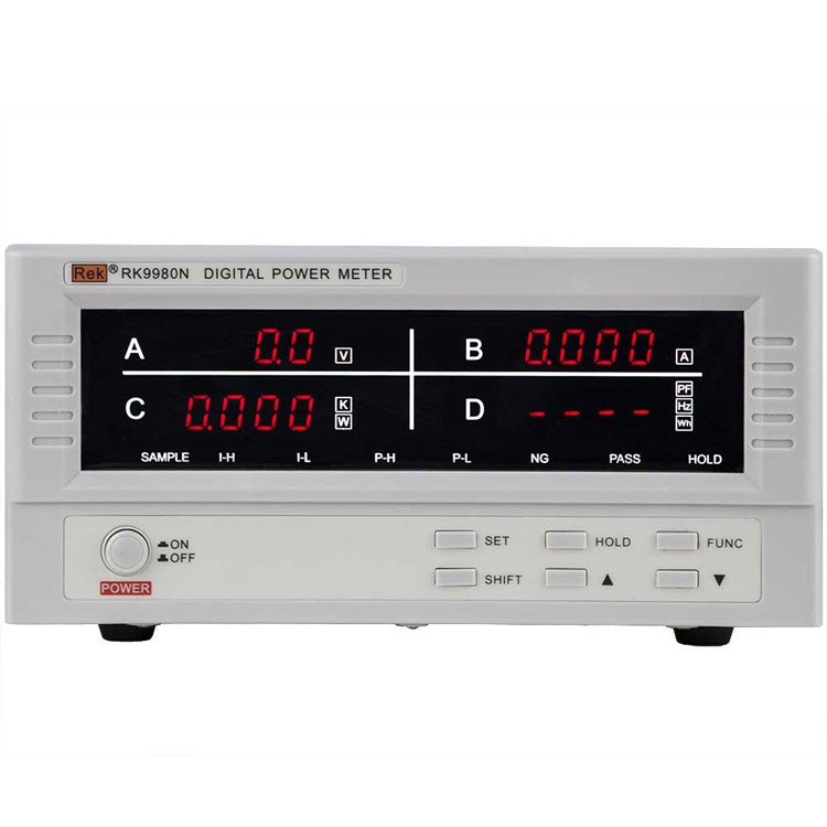 RK9800N系列具有全部的测量、显示功能,并且,在原RF9800的基础上,增加了数据保持功能,以及频率和(能量)这两项参数的显示功能。RK9901N是在RK9800N的基础上增加了电流和功率的超限报警功能。RK9940N和RK9980N是在RK9901N的基础向上开展了电流量程(最大分别为40A和80A),可以测量电流和功率更大的产品。