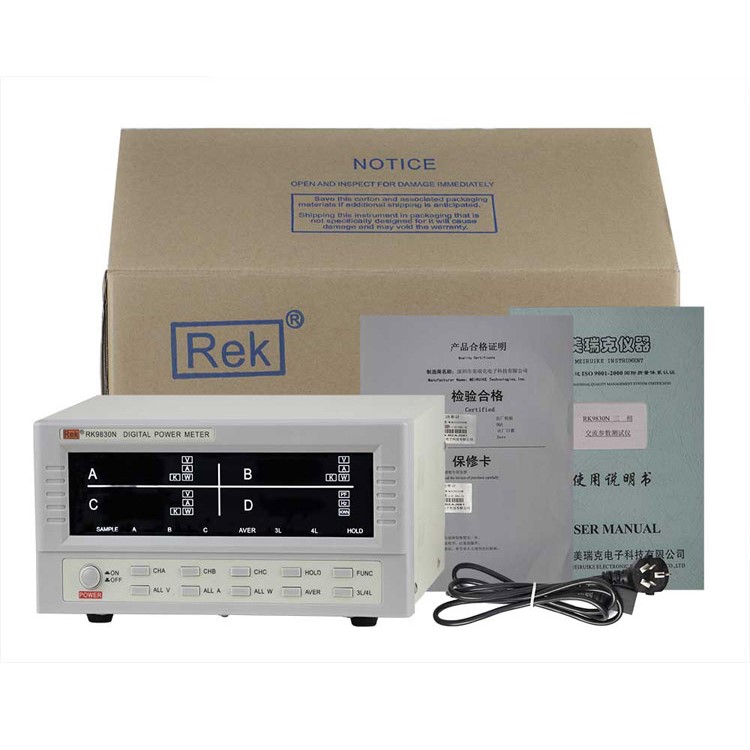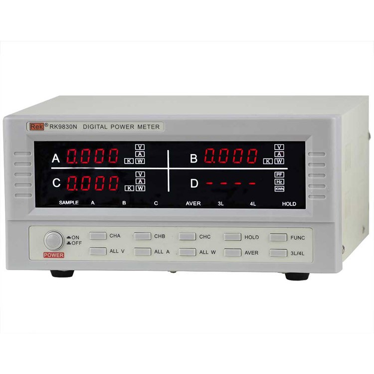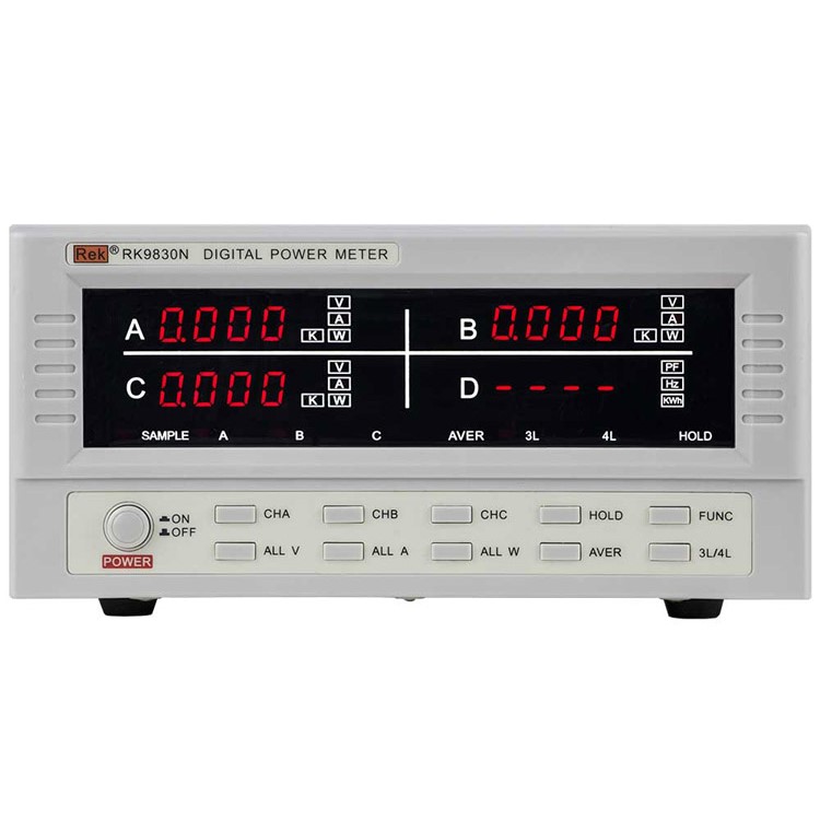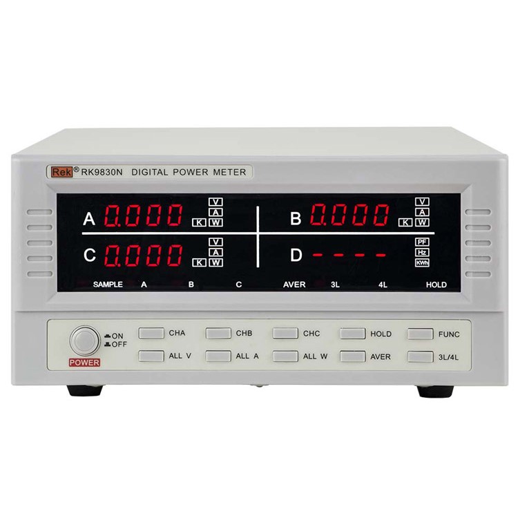 RK9830N智能电量测量仪(数字功率计),可以同时测量单、三相用电设备的电压、电流、功率、功率因数、频率、电能等参数,测量内容丰富,具有量程范围宽,预置报警、锁存和通讯等功能。