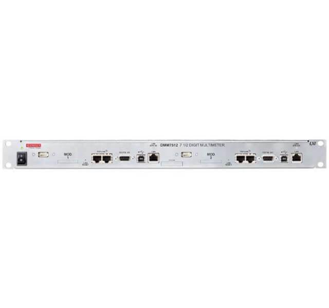 DMM7512 将两个全功能、高精度、高采样速度的数字万用表组合到一个 1U 高的全机架宽机箱中。该紧凑型机箱可在高密度仪器测试系统中节省机架空间,而不会影响测量性能。每个 DMM 具有相同的功能,并且完全相互独立。