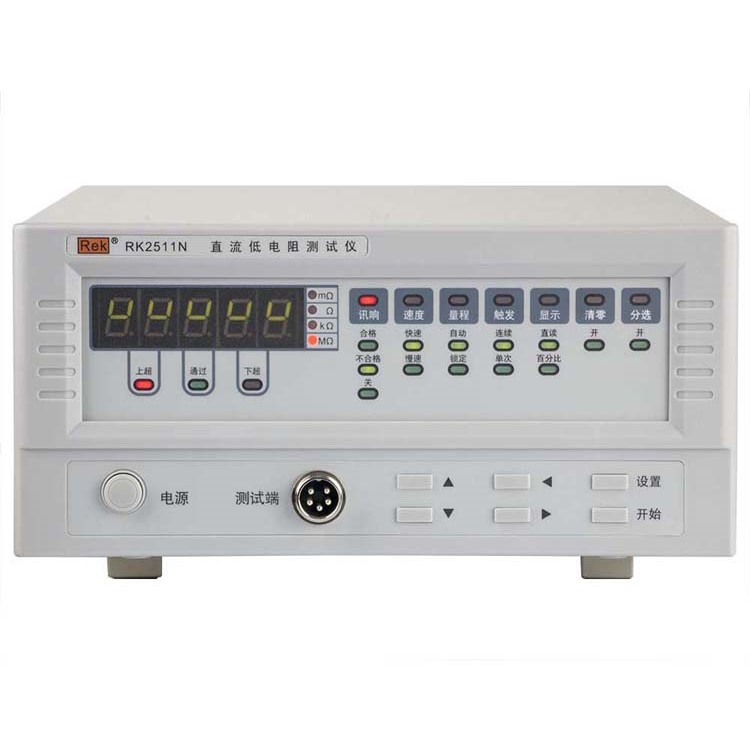 RK2511N直流低电阻测试仪是一款对变压器、电机、开关、继电器、接插件等各类直流电阻进行测试的仪器。其基本测试精度最高可达0.05%,并具有较高的测量速度。