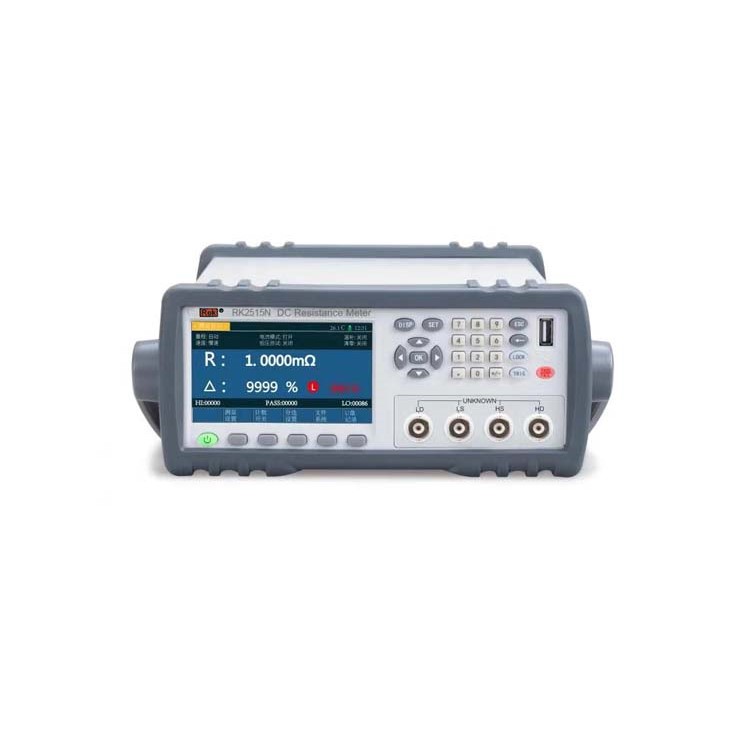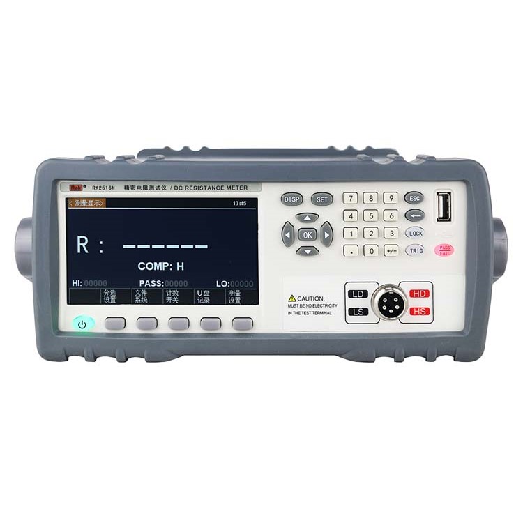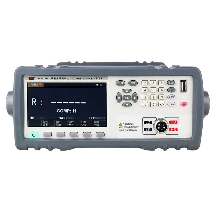 RK25XX直流低电阻测试仪采用当前主流的32bits CPU和高密度SMD贴装工艺、24位色4.3寸IPS彩色LCD显示以及上下左右功能键,界面清爽、操作便捷;其使用于继电器接触电阻、接插件接插电阻、导线电阻、印制板线路及焊孔电阻等;温度补偿能免除环境温度对测试工作的影响;RK25XX系列提供了多种接口功能,可方便的与PC进行数据通讯和远程控制。
