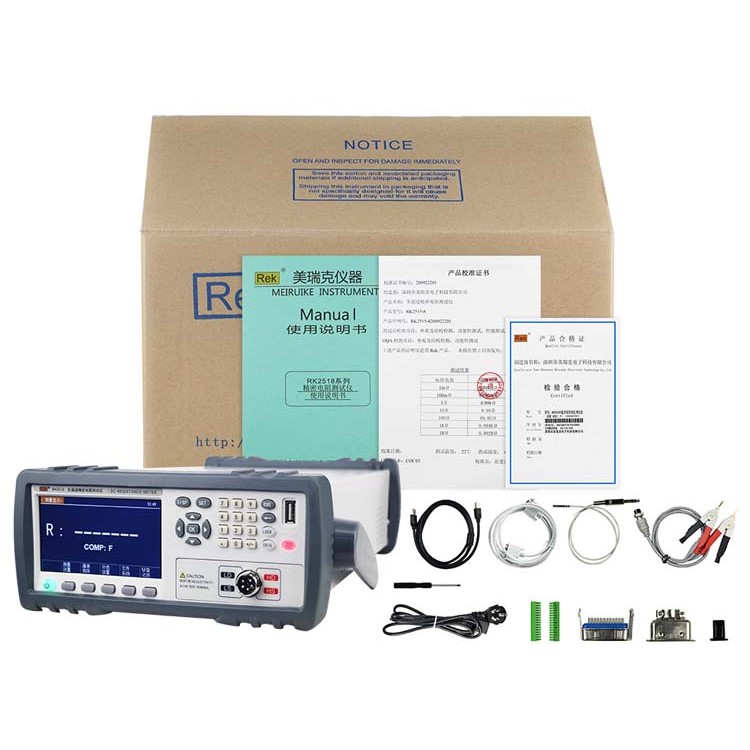 | 配件 | 四端开尔文测试夹、温度探头、USB/232通讯电缆、插拔式接线端子、电源线 | ||